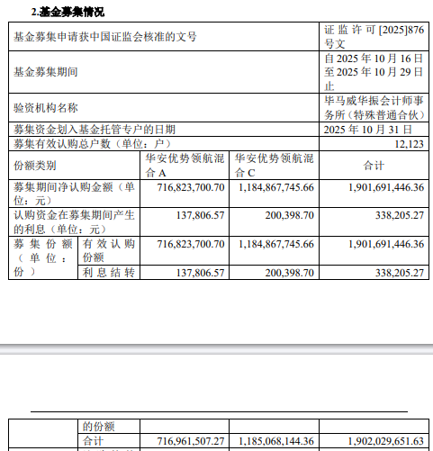 中国经济网北京11月3日电 近日,华安基金发布关于《华安优势试点混合型证券投资基金协议》有效性的公告。融资期内认购净额为1,901,691,446.36元,融资期内认购资金应计利息为338,205.27元,募集股份总数为1,902,029,651.63元。基金经理栾超先生曾任中邮创业基金管理有限公司研究员、助理基金经理、基金经理,2017年4月加入新华基金管理有限公司,担任股权投资部基金经理。2023年11月加入华安基金,现任北京股票团队负责人、基金经理。
