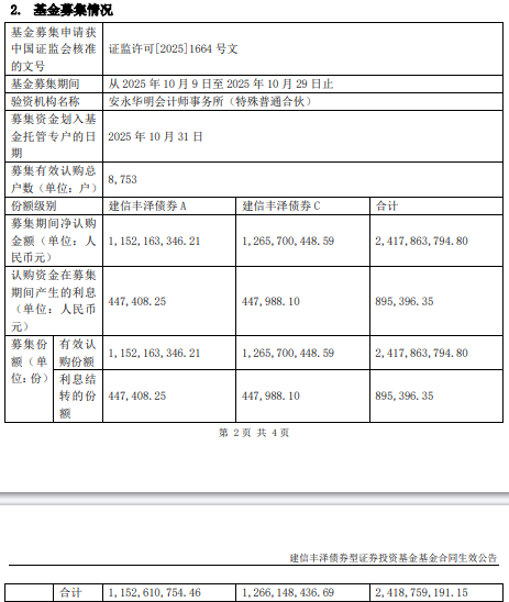 中国经济网北京11月3日电 近日,建信基金发布关于建信堡垒债券型证券投资基金协议有效性的公告。融资期内认购净额为2,417,863,794.80元,融资期内认购资金应计利息为895,396.35元,募集股份总数为2,418,759,191.15元。基金经理薛凌现任金融工程与指数投资部副主任,博士。 2009年5月至2009年12月在国家公司区域能源分配研究所至中国红电公司担任项目主任。 2010年1月至2013年4月,担任高级软件工程师路通世纪公司亚洲数据采集部。工程师; 2013年4月至2015年8月就职于中投证券公司,担任研究员、投资经理。 2015年9月加入建信资产管理金融工程与指数投资部,担任助理基金经理、基金经理。彭子云于2013年7月加入建信基金,历任研究部助理研究员、固定收益投资债券研究员、基金经理助理。 2019年7月17日获委任为基金经理。